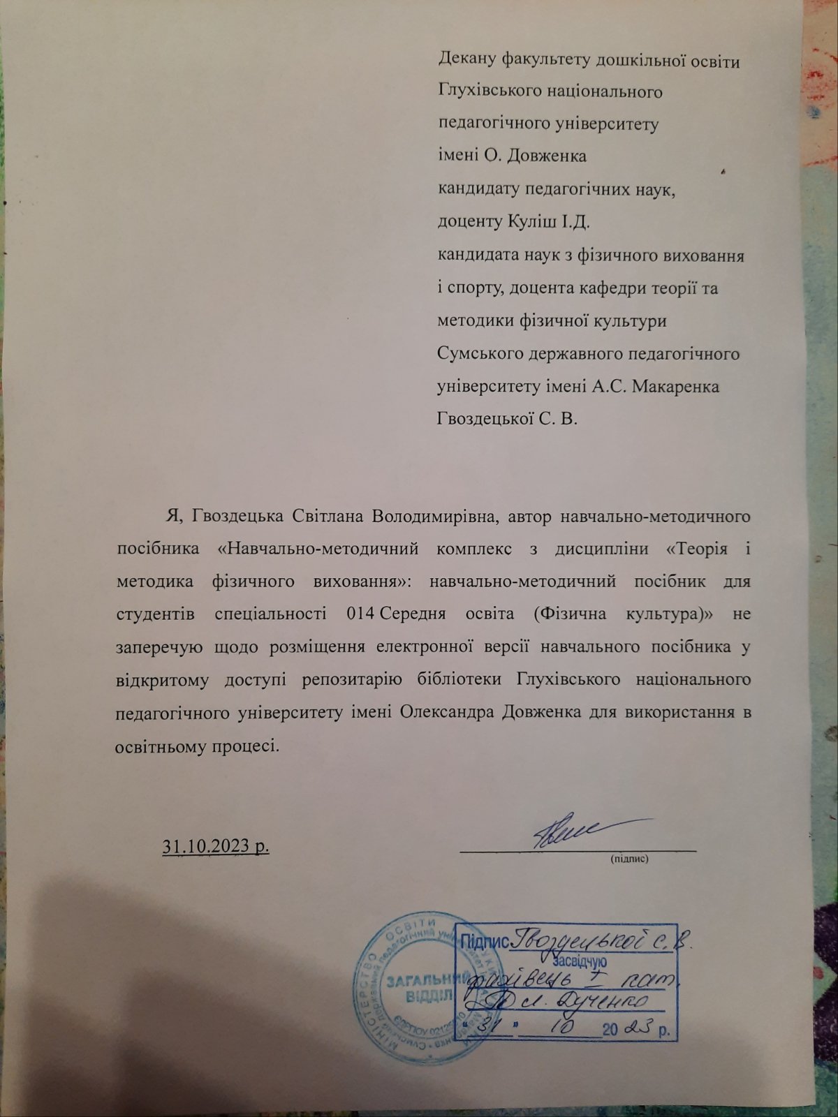 оформлення документів учителя фізичної культури.